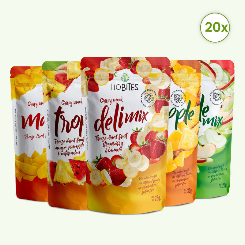 La compra definitiva de volumen. Combina los mixes de energía y sabor que más necesitas para no quedarte sin snacks. ¡El precio por bolsa más bajo de Liobites!